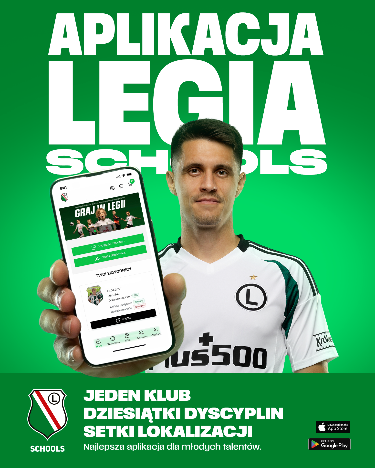 Pełną listę sekcji dostępnych w naszej aplikacji znajdziecie tutaj: LegiaSchools.pl! JEDEN KLUB | DZIESIĄTKI DYSCYPLIN | SETKI LOKALIZACJI |